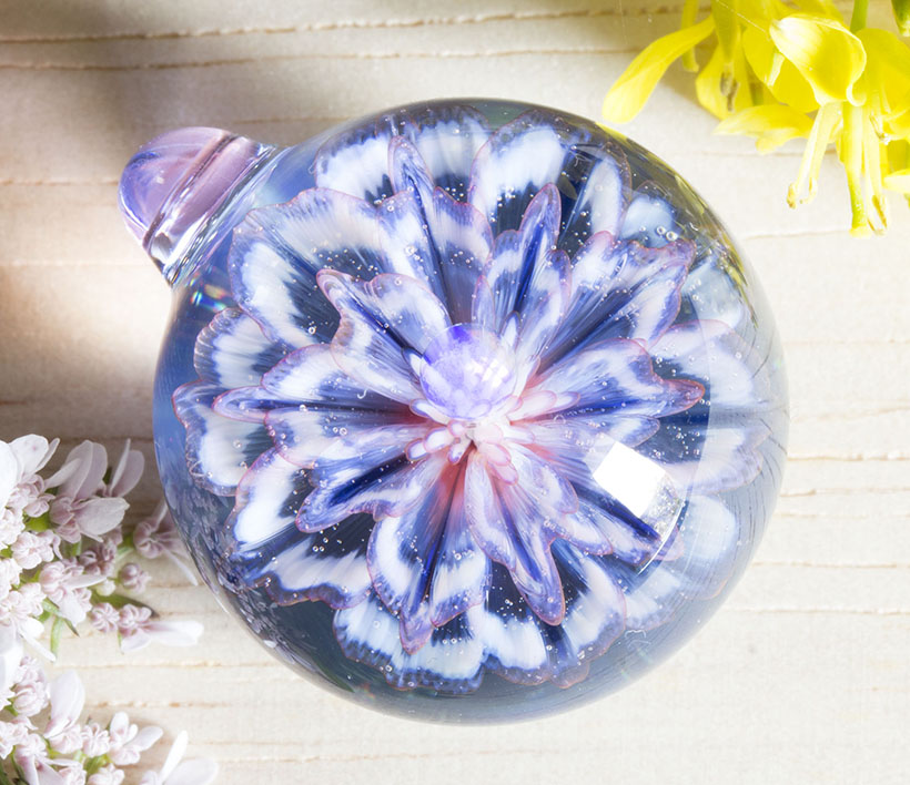 ボロシリケイトガラスという耐熱ガラスを2000℃の炎で溶かし、